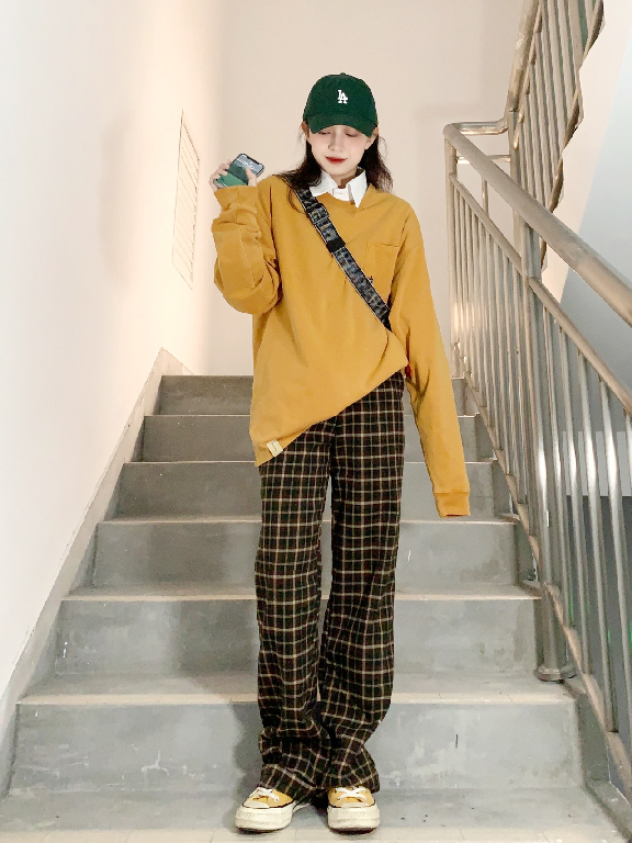 衛衣+襯衫是常規組合了,但是穿上格紋褲,就會讓整套看起來不那麼單調,更像叛逆期少年的感覺。