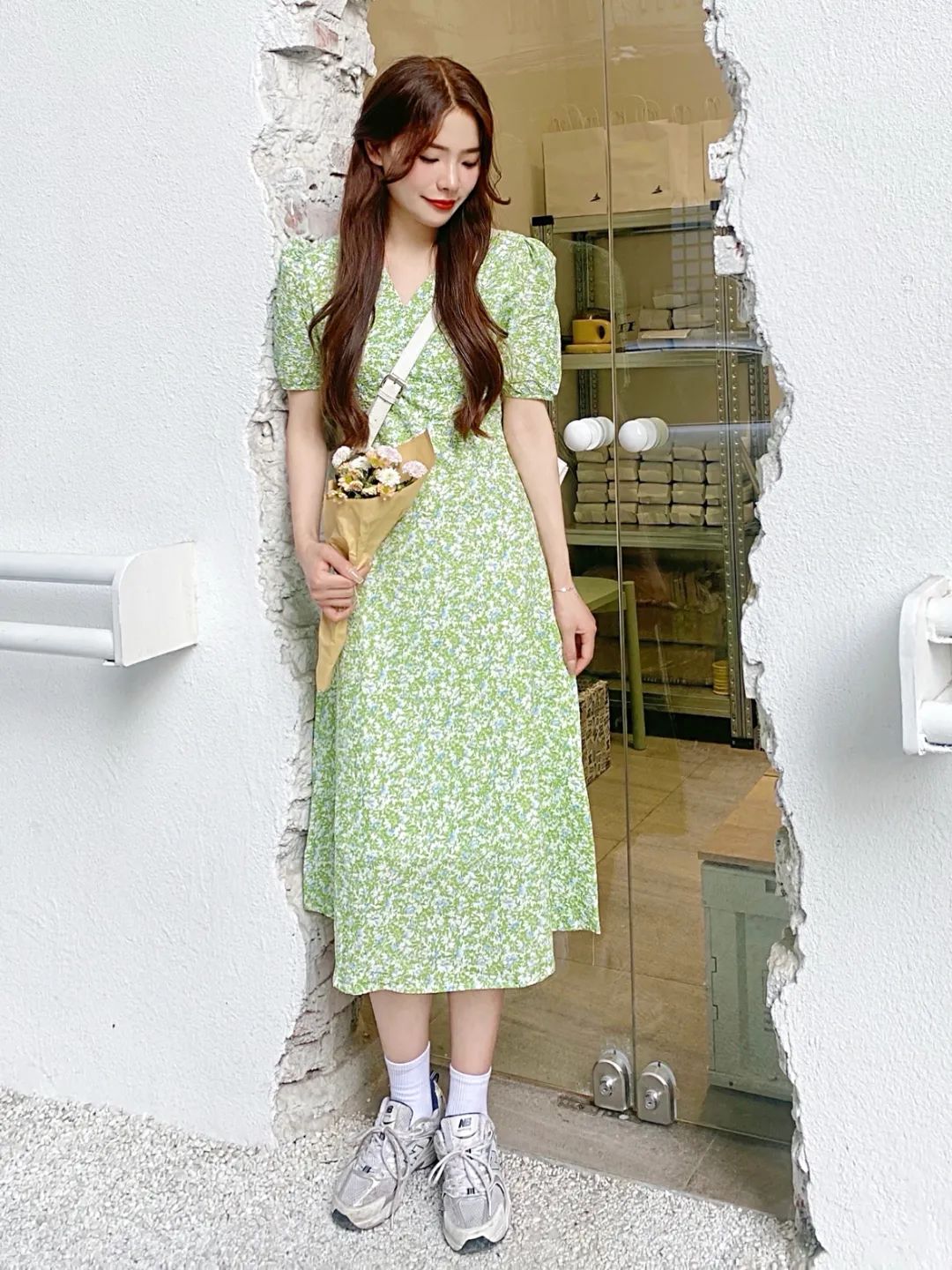 我翻遍了很多韓國博主,發現她們都很喜歡穿碎花,這也是韓系穿搭的經典元素,再搭配韓式捲髮,氣氛感拿捏了~