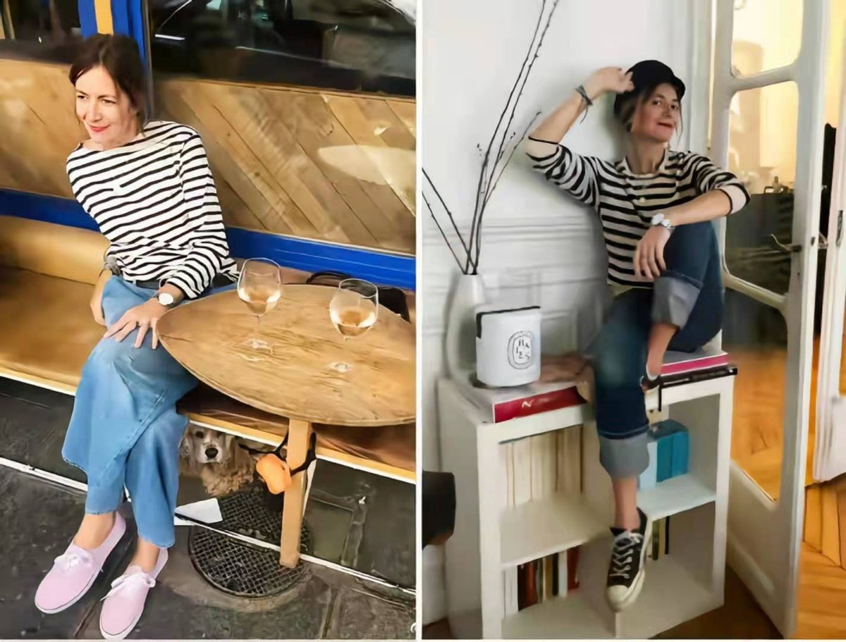 當然老年人在穿搭方面一般喜歡以舒適為主,所以日常穿搭裡一定少不了柔軟面料的服裝。像這種針織面料的上衣,利用黑白交替的條紋,來給上衣增添個性,款式偏向寬鬆,穿起來既舒服又不會讓人顯胖,即使設計比較簡約,但是卻可以透露出時髦氣息,下面配上闊腿褲或者牛仔褲,都頗有看點。