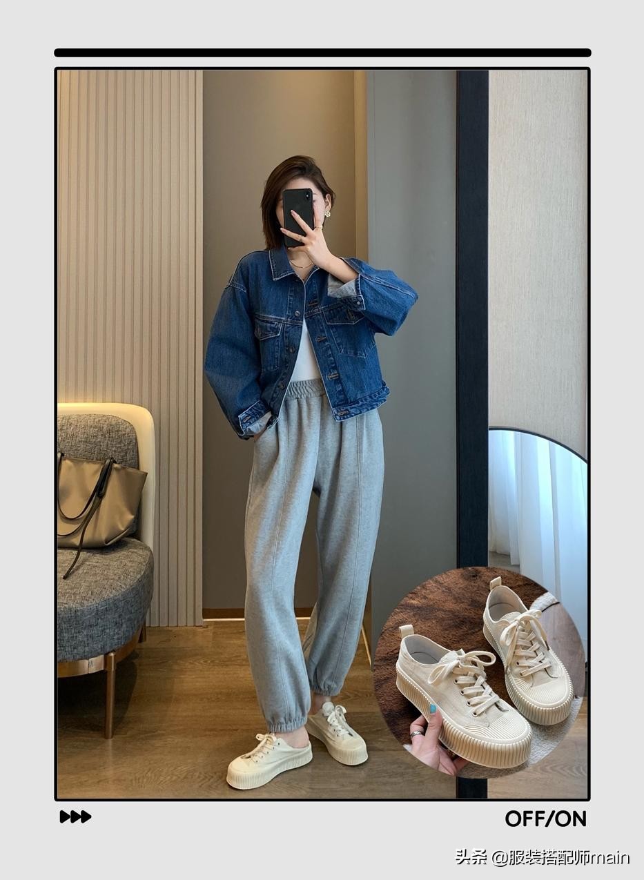 有的時候逛街對我來說不是去購物的,而是一種放松,精神放松了穿衣也要放輕鬆。寬鬆的衛褲踩一雙厚底帆布鞋。