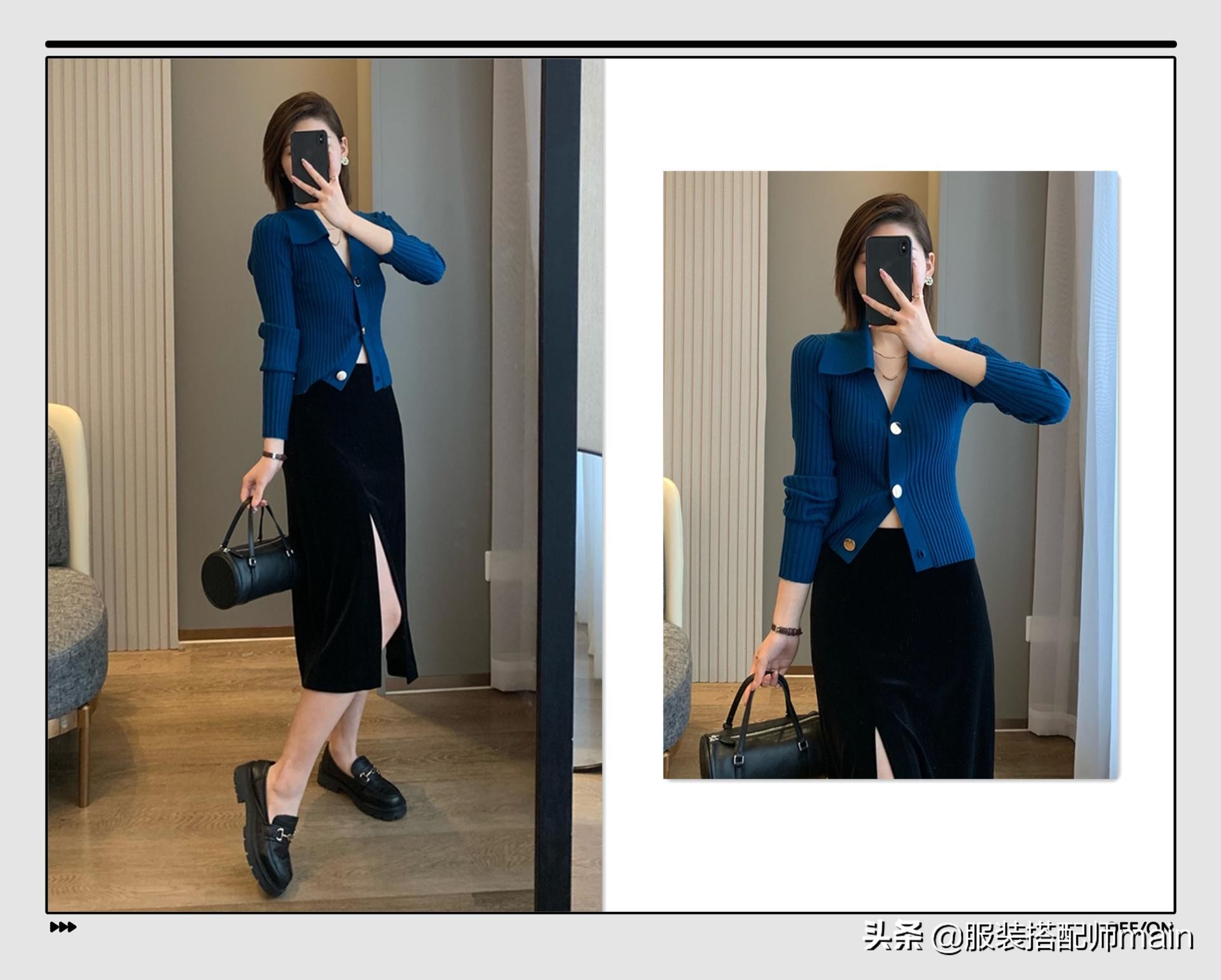 恰當好處的V型領口,露出纖細的鎖骨,感覺挺拉長脖子的。裙身再有收緊的設計,勒出細腰,真的很完美了。