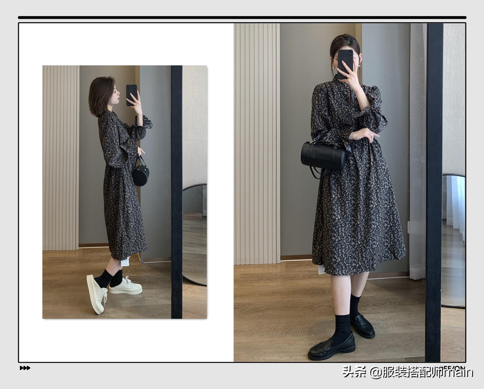 在北方出遊的話,我比較建議穿一條長袖碎花連衣裙,遠離城市的地方溫差會更大一些。長袖還能藏住手臂上的肉肉。