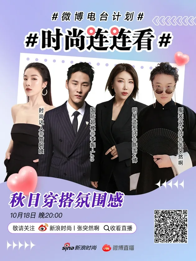 有什麼比「秋日穿搭氣氛感」塑造來的更直接呢?10月18日晚20點,新浪時尚聯手服裝設計師@張突然啊進行了一場精彩直播,邀請嘉賓國際超模@李振-Lee、明星造型師@陳雪v博、時尚達人@管阿姨,一起聊了聊他們對氣氛感的解讀,如何打造高級又時髦的#秋日穿搭氣氛感。