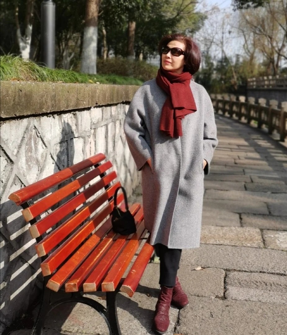 個子較矮的六十多歲的女性,如果體型偏胖,可以在冬季多用煙管褲和短靴相配,自然的顯高,修飾腿型,呈現出優雅的一面。