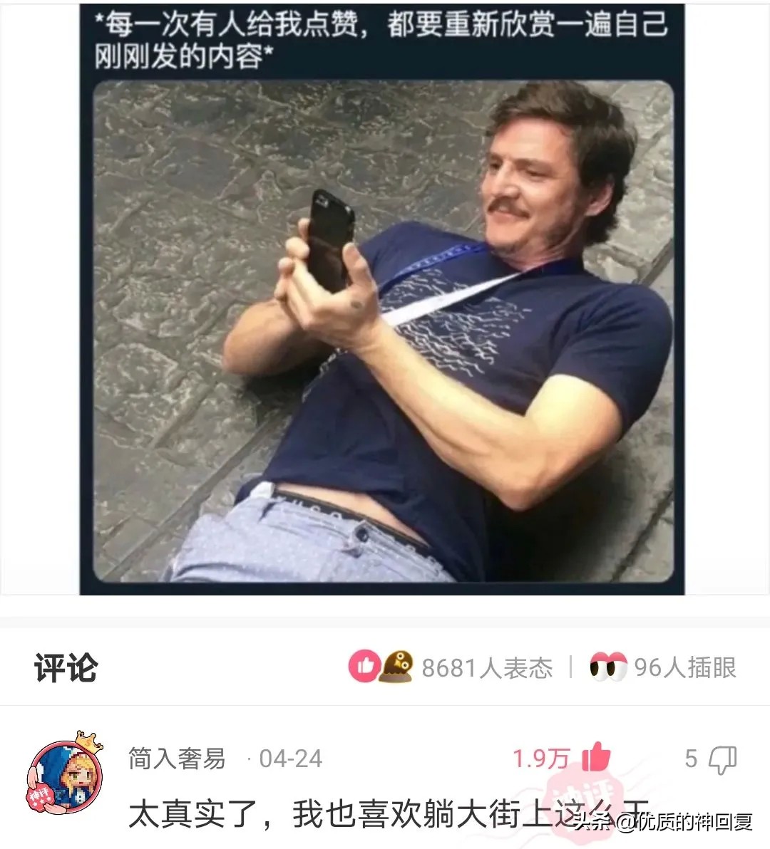 你看到自己發的內容,笑得真開心。