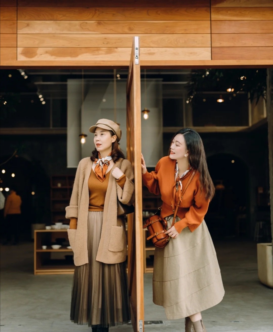 焦糖色的長大衣和黑色大衣相比,它的特色會更加鮮明,呈現出來的風格會更加溫暖,也很適合六十歲左右的女士運用。