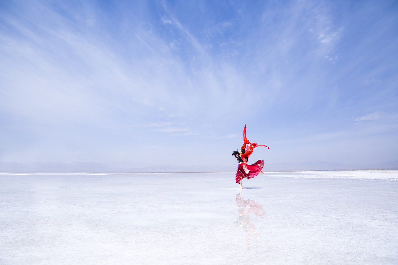 茶卡鹽湖,被稱為大陸的「天空之鏡」,遼闊無垠,湖面如鏡。日出日落前後,彩雲、朝陽或夕陽照映鹽湖,水天一色,讓人難忘。