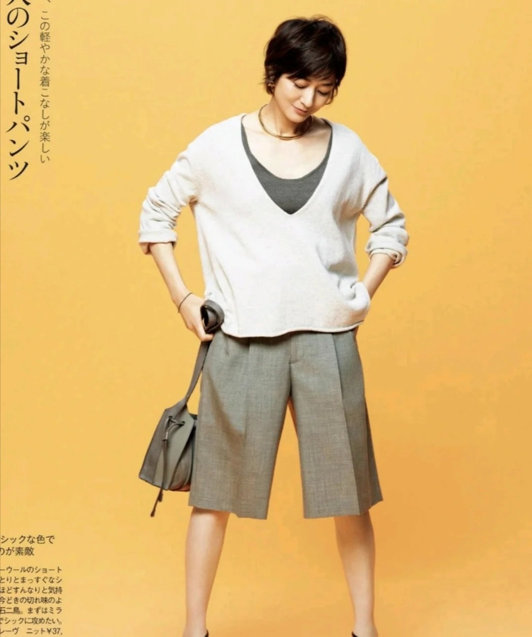像這條五五分短褲,從春天一直駕馭到夏天,也沒多大的問題。寬鬆的褲管可以包容大腿的位置,而小腿呈現出些許部分,會放大性感。