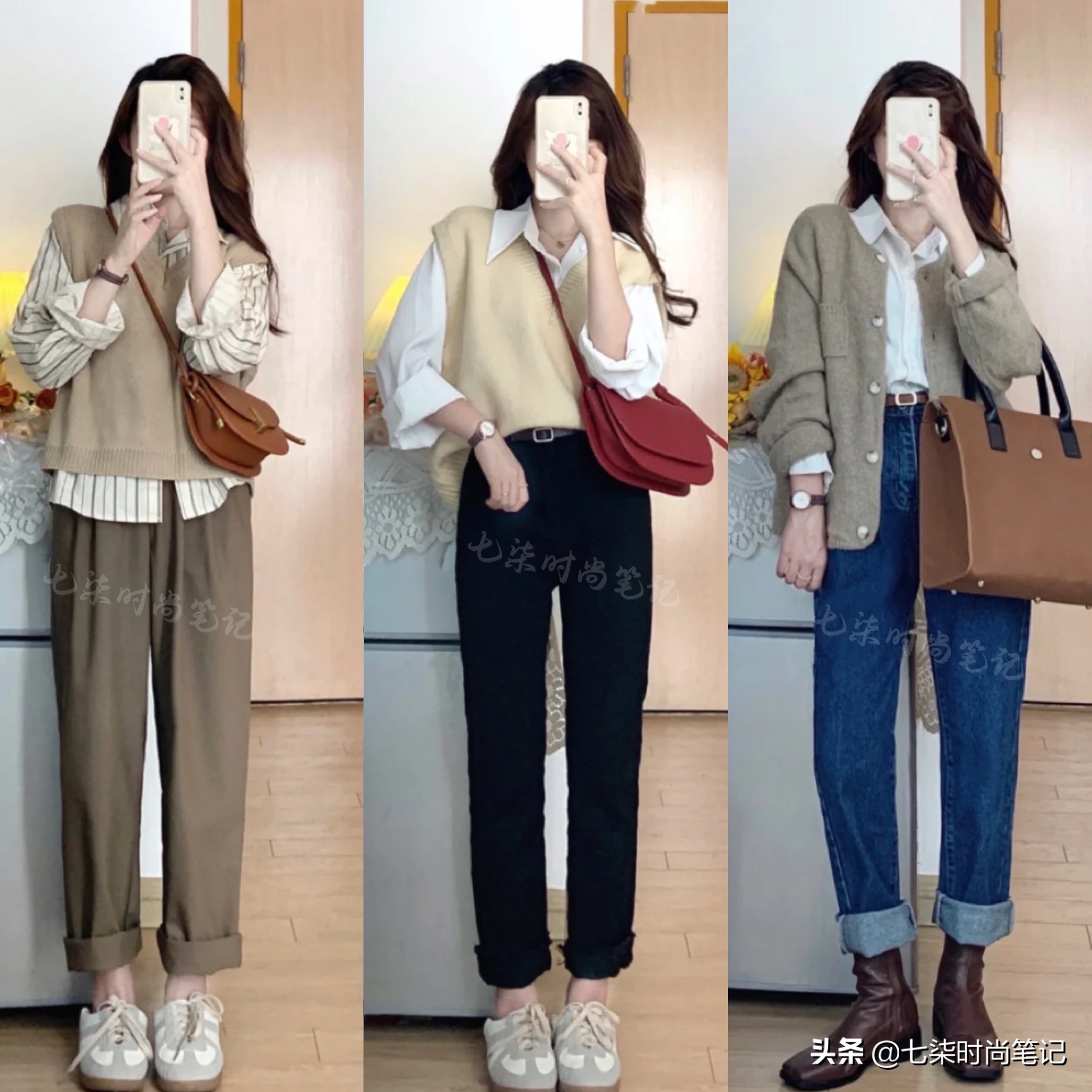 文藝范的背心馬甲疊穿一件純色襯衫可以輕鬆凹出減齡的學院風,黑色馬甲背心非常顯瘦,但是春天穿有點悶,就可以試試疊穿一件彩色襯衫。