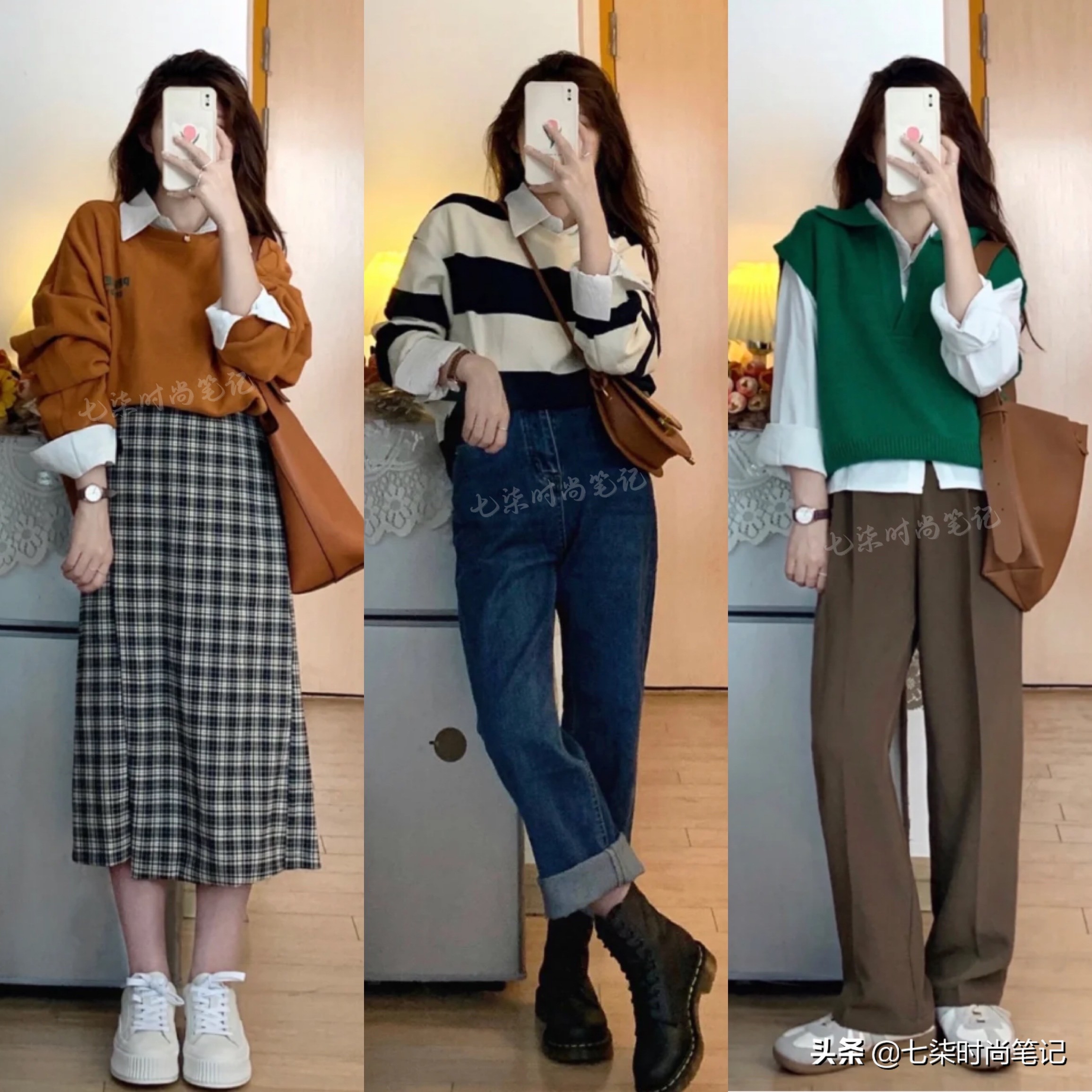 或者選擇這種帶領子的針織衫或者背心,有點復古文藝還能順便修飾臉型。