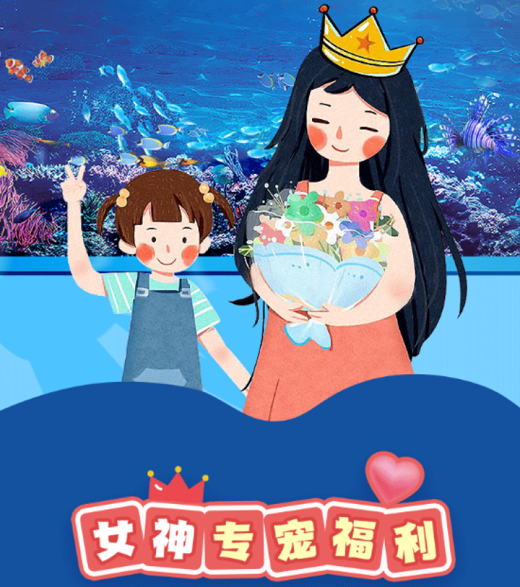 3月5日至3月8日,女神限時特惠套餐:180元/兩人,去夢幻浪漫的打卡光環,走進繽紛珊瑚帶,身臨其境海底漫步,感受魚兒和海龜在四周遊弋,開啟一場浪漫海底之旅。