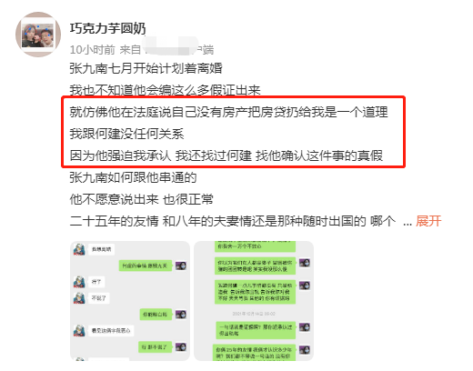 今天白天女方又延續發文,控訴張九南盜了自己的微博號,還說張九南不僅設局離婚,還設局污蔑自己婚內出軌,早就不懷好心。她還曬出承諾書,表明表姐會給自己在法庭作證。