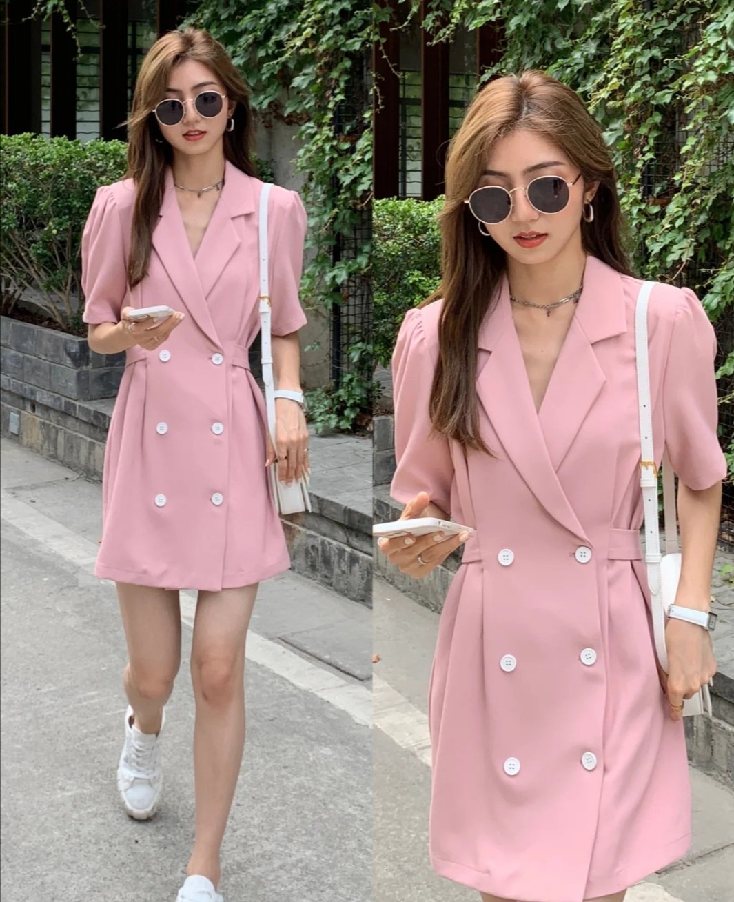 就像這件粉色的西裝連衣裙,它的顏色毫無疑問是特別柔美且顯甜美氣質的類型,但有了西裝連衣裙大氣流暢的版式加持之後,就能減輕它過於柔的特點,呈現出幾分明顯的幹練感。