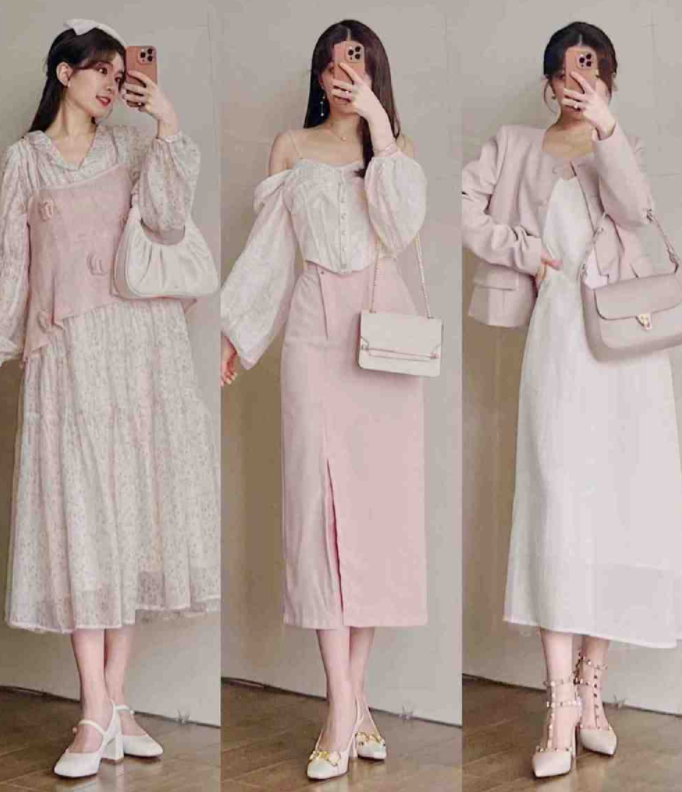 若是覺得單一的同色穿搭過於乏味,可以在搭配的時候加入一些個性化的配飾去修飾,例如我們在穿這種純色裙裝時,也可以去加入各種精緻的包包,腰帶,耳飾,項鏈,用飾品來修飾,會讓造型變得更有亮點,也可以在裙子的設計上面融入一些小碎花。