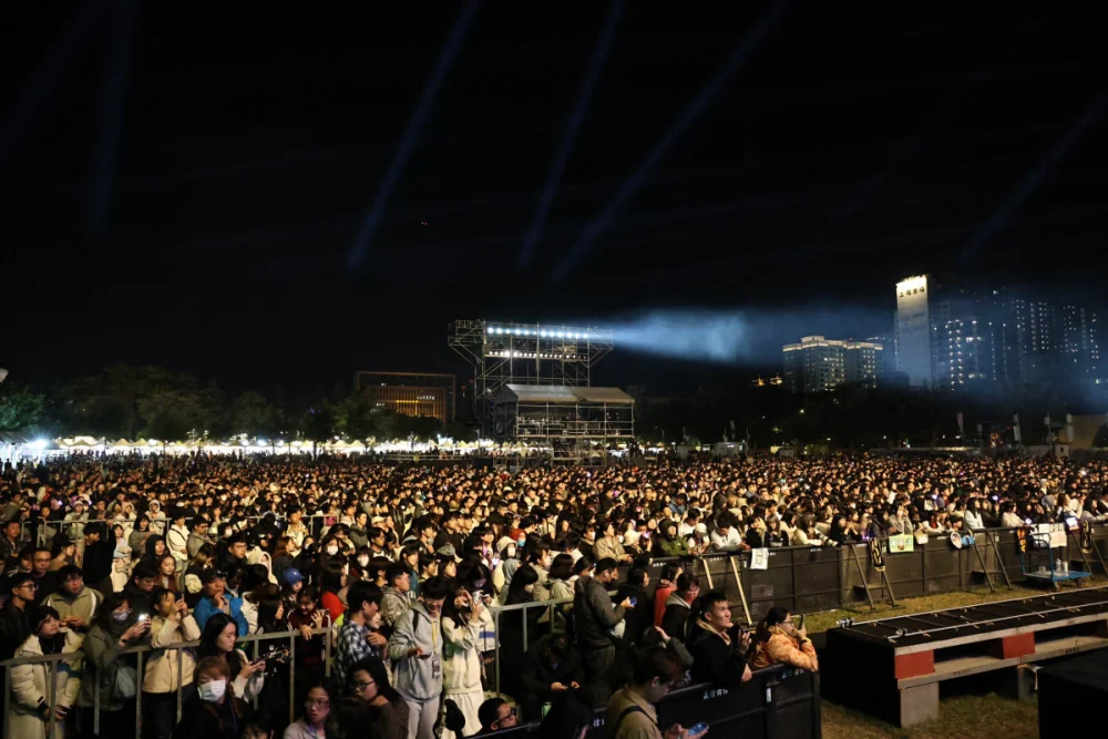 緊接在「麋先生」的表演後,由號稱「風雨男團」的FEniX帶來精湛唱跳演出,點燃現場熱力,台下粉絲熱情歡呼。截至晚間八點為止,美食區已經全滿,舞台前草地區則已接近九分滿,主辦單位統計現場約已聚集15萬人次觀眾。依此人潮盛況,總人次有機會打破去年的25萬人次紀錄。
