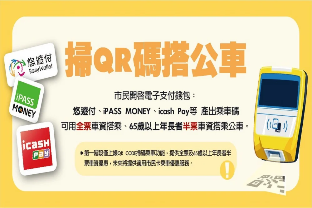 張新福說明,第一階段交通乘車碼(QR Code)依現行里程計費制度計費支付車資,並以全票進行扣款,而65歲以上年長者則以半票扣款。民眾使用交通乘車碼(QR Code)搭車時,與現行使用實體電子票證卡的方式相同,須於上、下車各掃描一次,驗票機顯示交易成功即代表扣款完成,無須等待手機畫面顯示,以免影響上下車動線。