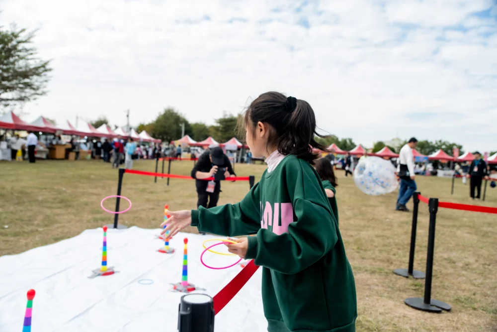 在手作體驗部分,特別推出「編織稻草小掃把」與「毛根開運小盆栽」DIY 活動,透過動手創作傳遞迎新納福的祝福意涵;闖關活動則是完成關卡即可兌換園遊券,增添活動互動性與趣味性。此外,現場設置 充氣氣墊、套圈圈、泡泡足球、大型扭蛋機 等大型遊樂設施,並規劃 限量鞭炮體驗,讓民眾在安全規劃下感受傳統年節的熱鬧氛圍,深受親子族群喜愛。
