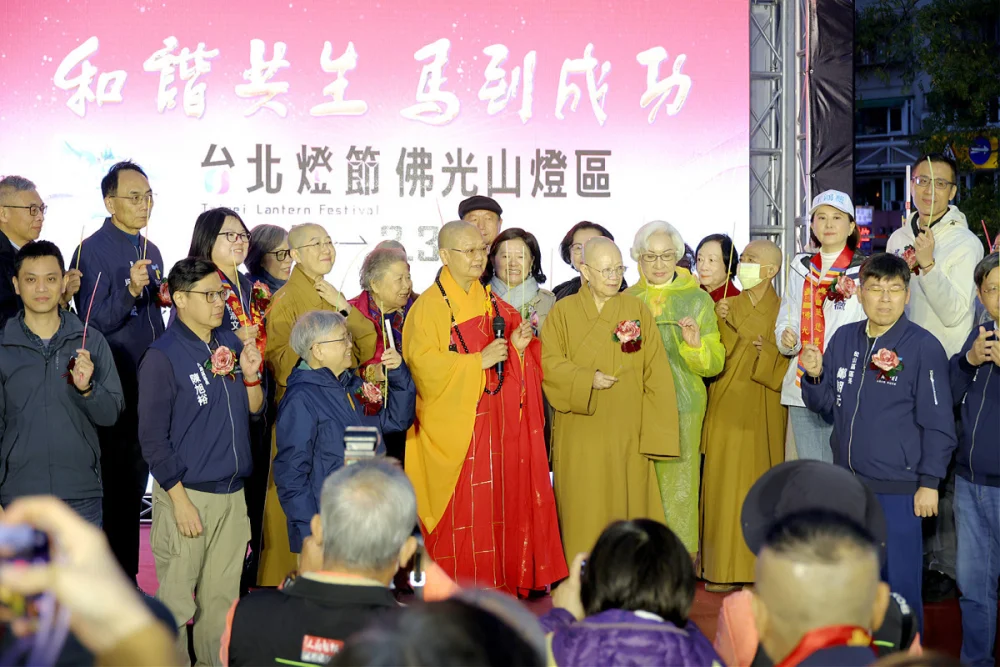 響應「2026 台北燈節」,佛光山台北道場今日(2 月 7 日)由住持滿謙法師帶領近 600 位嘉賓與信眾進行祈願啟燈。今年燈區設計結合宗教美學與現代風格: