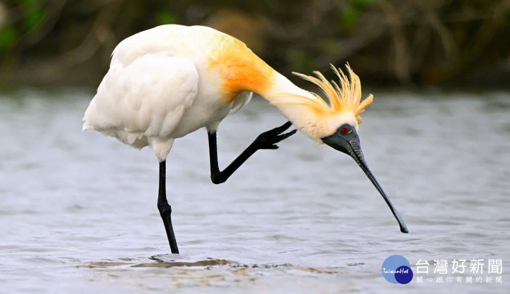 隨著春節腳步接近,來臺度冬的黑面琵鷺族群,開始換上繁殖羽,成鳥頭上的冠羽日漸增長,由白色變成金黃色,頸圈也逐漸形成金黃色的飾羽,宛如金毛獅王般,十分討喜與俊美,個體間的互相理羽時常可見,春節期間是絕佳的賞鳥時間,之後再1個多月的時間將大部分北返回到繁殖地,完成傳宗接代的重大任務。