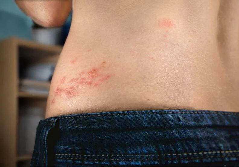 帶狀皰疹會出現紅疹與刺痛感,透過中西醫整合治療可加速恢復,減少後遺症發生。(情境照,非當事人)