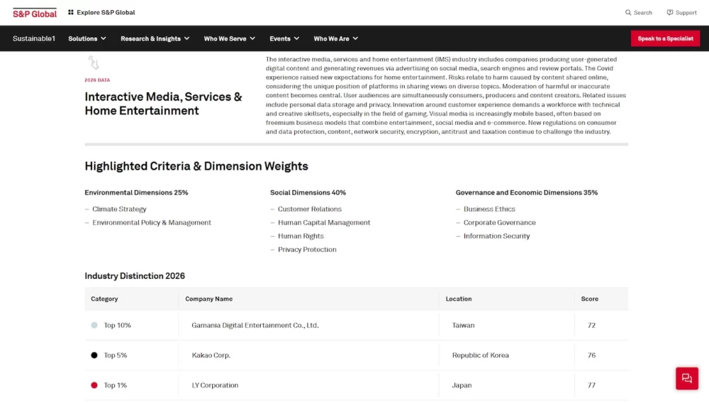 之《2026永續年鑑》(The_Sustainability_Yearbook_2026)橘子集團蟬聯互動媒體娛樂業全球同業中名列第三名.webp)