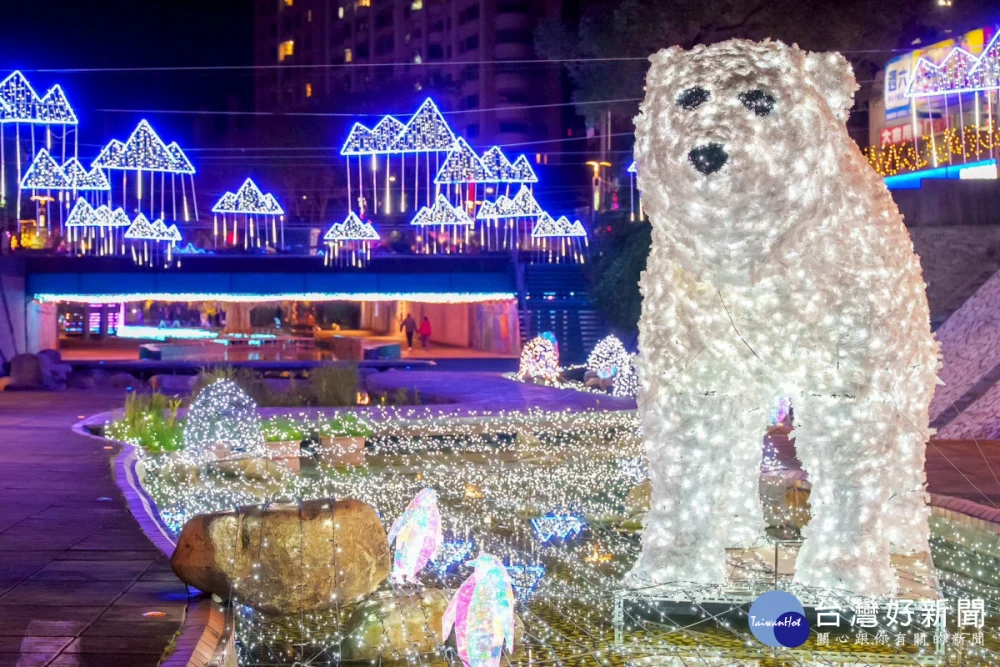 宋德仁說,今年最吸睛的亮點是位於自信橋下的「星耀之樹」燈光裝置,7米高的立體發光樹裝飾中港河廊,彷彿被帶入一場由光芒與星河編織的浪漫夢境。現場還有3米高雪白北極熊現身,搭配可愛俏皮的企鵝群,營造極地奇幻氛圍;橋下及樓梯扶手欄杆還布置璀璨浪漫燈飾,超過三百萬盞LED燈相互輝映,交織點亮整個中港河廊。