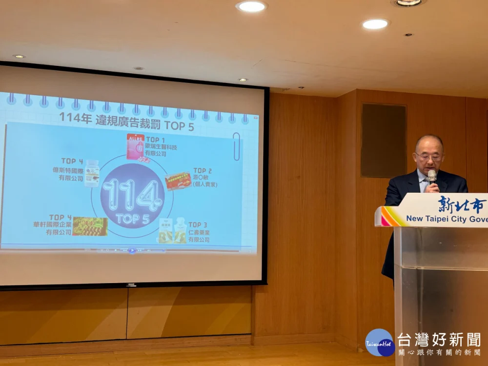 新北市衛生局針對114年轄內食品、化粧品、藥品、醫療器材,以及一般商品違規廣告,共計開罰885件,罰鍰總額達6,089萬餘元,統計違規廣告裁罰前5名業者累計罰鍰皆破百萬。分析違規產品類別,以食品類占最大宗,其次為化粧品;違規廣告刊登平台則以網路為主。食品及化粧品廣告常使用「減肥瘦身」及「除皺」等誇大宣稱,誤導消費者對產品效果產生不切實際之期待。衛生局針對違規業者依法從重處分,絕不寬容。