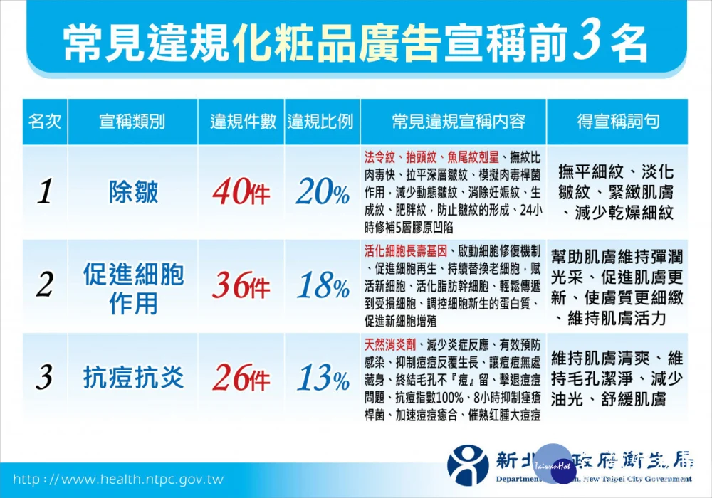 食品、化粧品誇大不實違規廣告 新北開鍘罰鍰總額逾6千萬