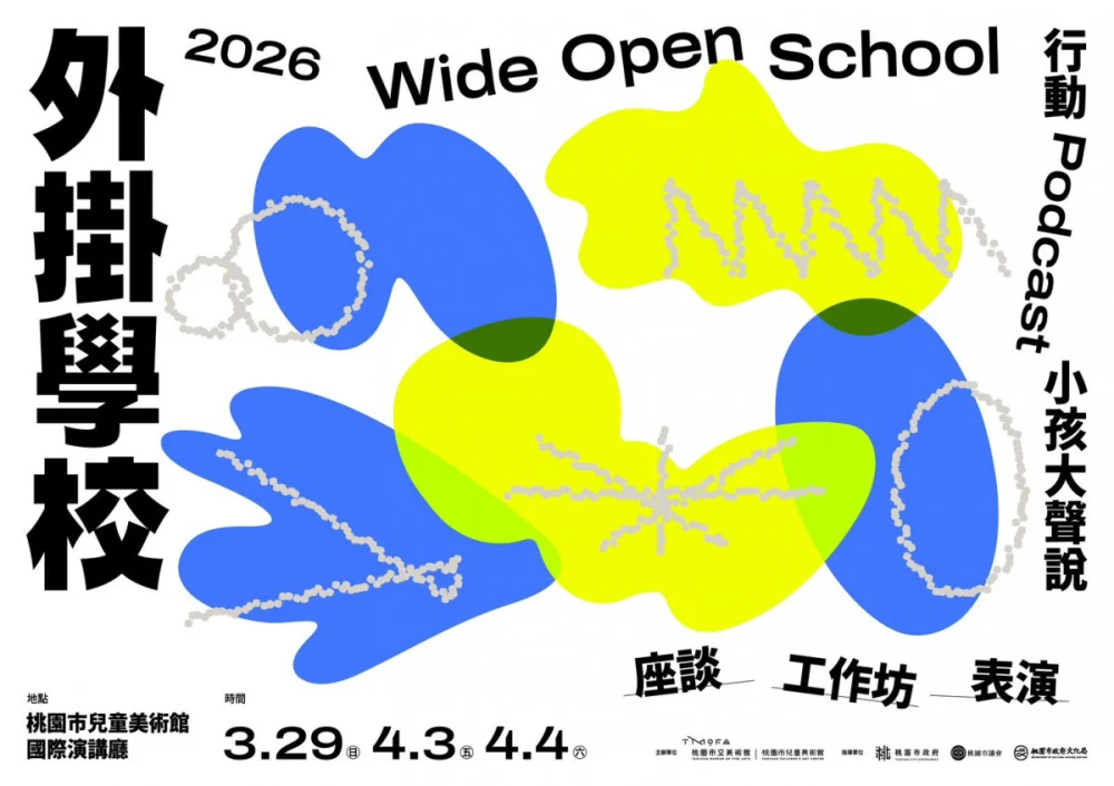 2026「外掛學校」系列活動包括前導座談「從理論到現場:走向『與兒童一起』」。時間:3/29(日)13:30-15:30。講者:冷彬(富邦文教基金會|總幹事)、李玉華(社團法人超越遊戲協會|理事長)、楊惠君(少年報導者|總監)。對象:藝術與教育相關工作者、對「與兒童一起」理念有興趣的父母和一般大眾。