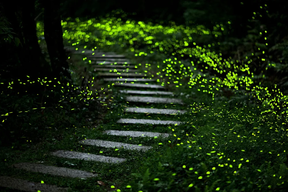 搭乘捷運即可輕鬆抵達的賞螢熱點,首推新店碧潭和美山步道。從新店捷運站出發,步行僅需10至15分鐘便可抵達和美山登山口,沿途還能收集「微笑山線大縱走尋寶集章任務」的螢火蟲寶石。春夜降臨,和美山化身為夢幻螢光走廊,沿徑點點螢火飛舞,宛如流動的綠色星河,登頂更可飽覽碧潭湖光山色美景,和美山螢火蟲求偶繁殖高峰期,集中在4月中旬到5月初。