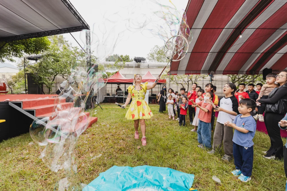 活動現場同步安排精彩舞台節目,由在地國小學童帶來活潑演出,並邀請街頭藝人王特面、劇場表演陸爸爸、魔幻泡泡秀甜姐兒及兒童唱跳團體接力登台,節目內容豐富多元,吸引民眾駐足欣賞,現場掌聲不斷,充分展現兒童節歡樂氛圍。