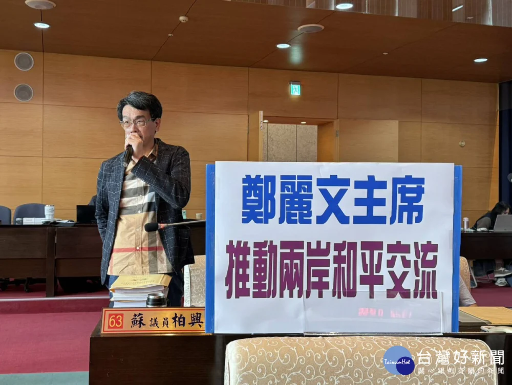 市議員蘇柏興表示,國民黨主席鄭麗文率團赴中國大陸訪問引發關注。目前國際局勢緊張、戰火頻傳,近期的美伊開戰也無法如美方所宣稱二、三周內就可以結束。反觀兩岸十多年來交流停滯,過去很多民眾也很擔心擦槍走火,如今鄭麗文踏出一步赴陸參訪、行程公開,希望對冷卻兩岸緊張的局勢有正向發展,讓兩岸能和平交流,也讓全國民眾能安心生活,讓年輕人不必擔心害怕要上戰場,他也想詢問曾擔任外交官的副市長黃國榮對此看法。