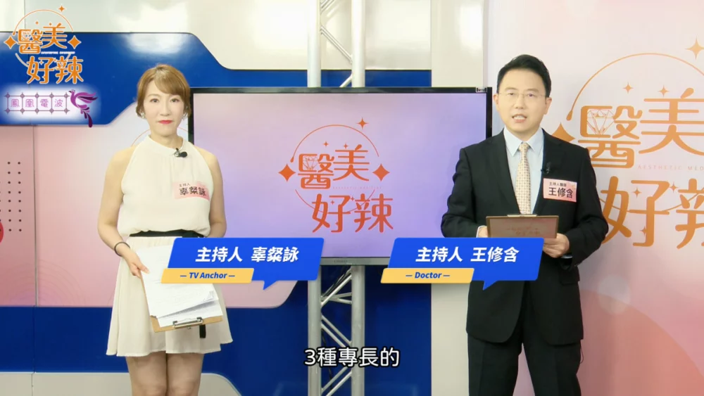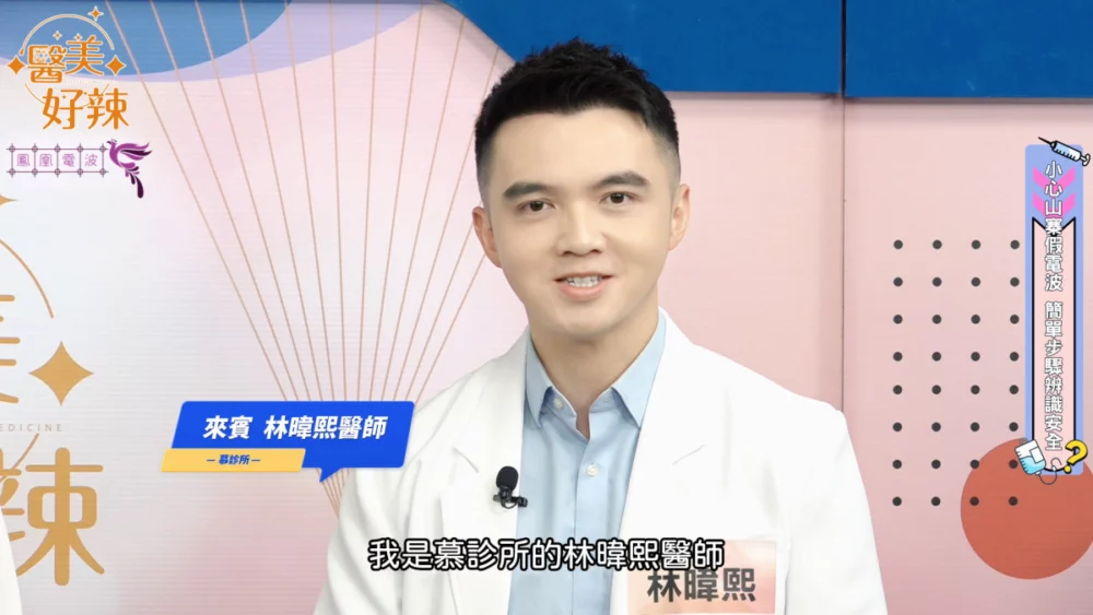 節目開場,粲詠笑稱:「這年代詐騙橫行,連臉都可能被騙!」王修含醫師點頭回應:「醫美市場也進入『假貨時代』,尤其是電波療程最容易出現平行輸入與仿冒探頭問題。」