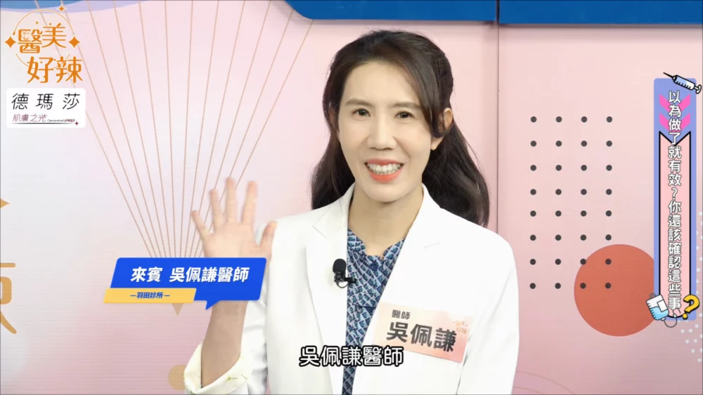 節目最引發關注的是「假貨與水貨」議題。吳醫師解釋,合法的注射器、注射物與醫師資格是三大安全要素。觀眾可上官方網站查詢「授權診所」,確認機器與針具是否為原廠正貨。「若查不到,就有風險可能使用未經核准器材。」她嚴肅提醒。