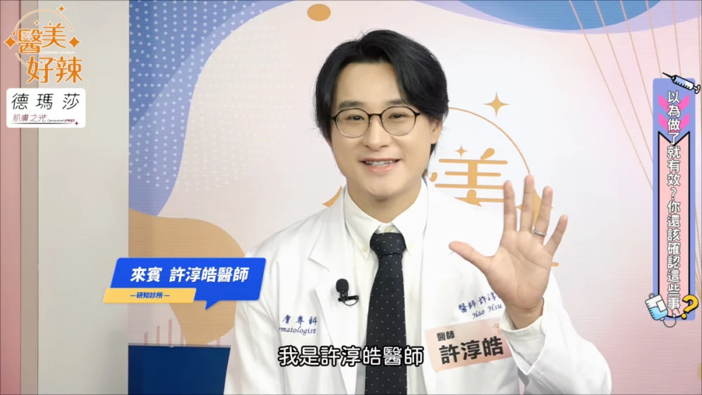 許淳皓醫師指出,水光針的關鍵不在品牌,而在醫師的評估與配方調整。「像乾性膚質可選玻尿酸補水,泛紅膚質適合肉毒輔助穩定,想提亮可用傳明酸或維他命C。」他強調應依衛福部核准成分調製,並經醫師確認劑量與層次,避免自行在非醫療院所施打。