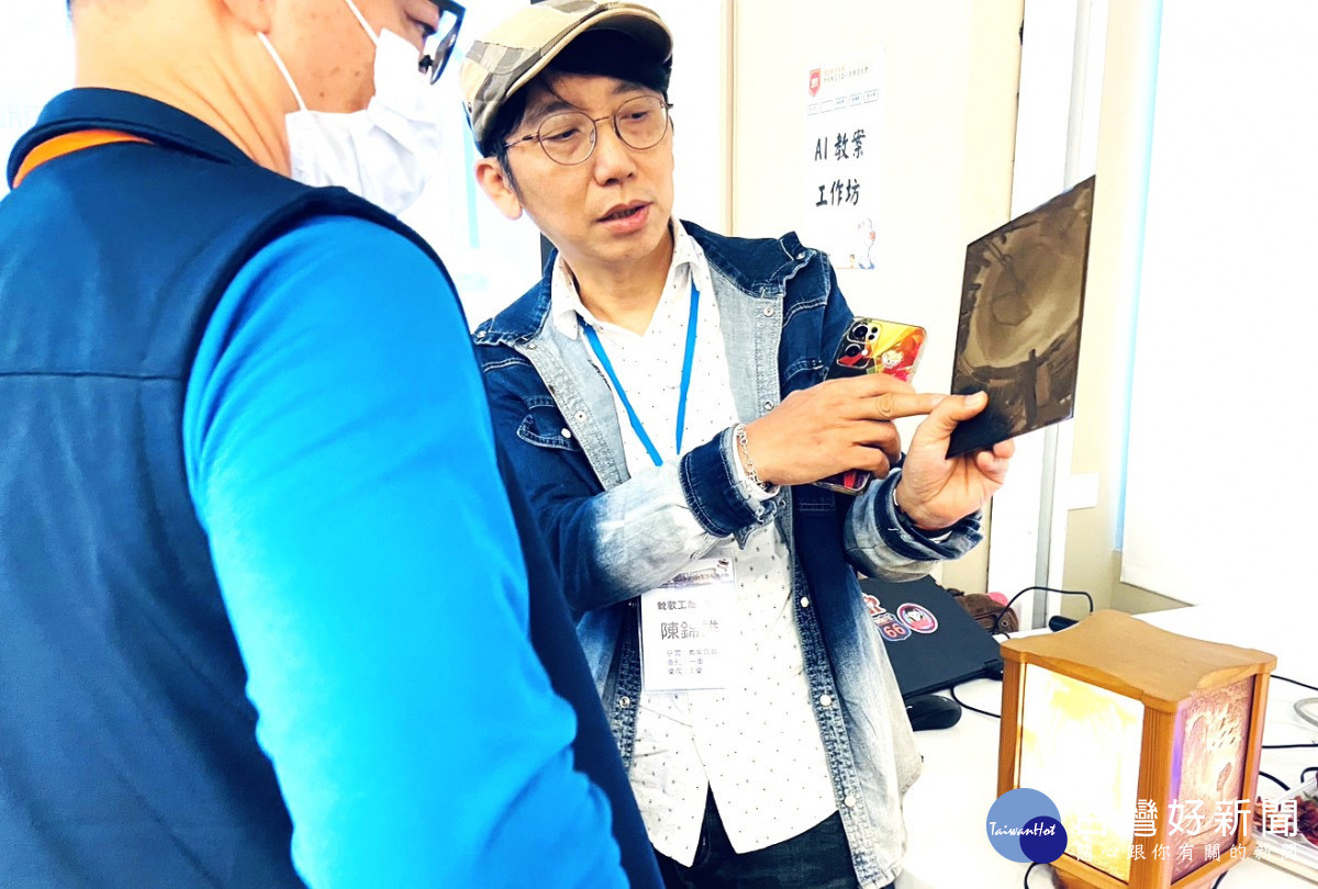 研習共集結新北49所創客學校校長與教師,以及嘉義縣竹崎高中與永慶高中等夥伴共同參與,形成南北最熱絡的創客交流。現場除教案分享外,也規劃VR沉浸式展廳、AI山水畫境互動、AI立體書生成、藍晒書籤手作等體驗。教師們透過實作親身感受科技如何為傳統藝術注入新生命,也在互動交流中激盪更多AI教學的創新火花。