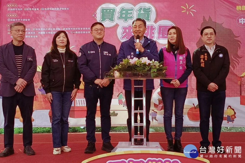 記者黃駿騏/桃園報導 「2026桃園年貨大街」中壢場10日上午於中壢銀河廣場熱鬧開幕,隨著象徵賀歲納福的卷軸「豐盛春節禮」正式…