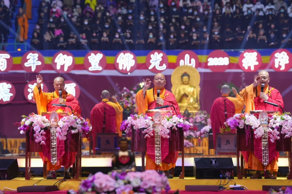 記者楊博喻/綜合報導 圖▲▼/佛光山台北道場提供 逾萬名佛教信眾於3月8日上午齊聚台北小巨蛋,共同參與佛光山「2026 年萬人甘露…