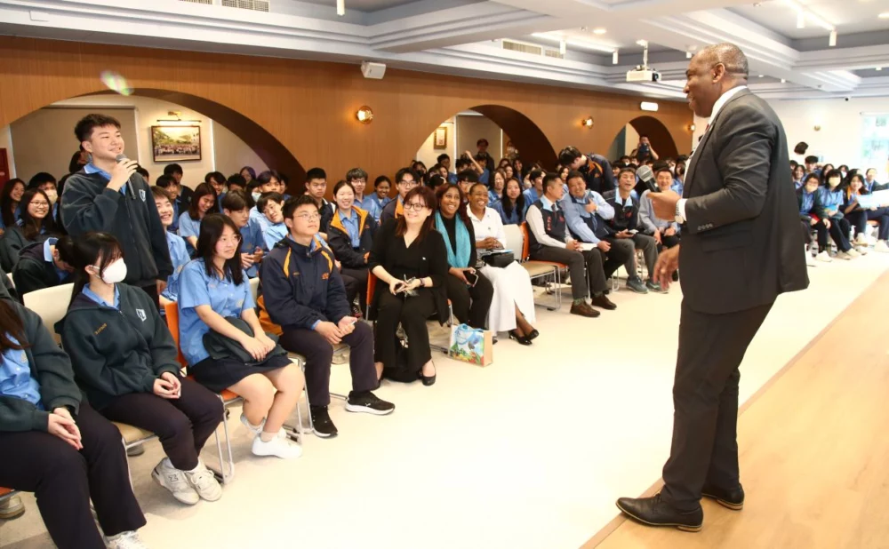 (記者陳志仁/新北報導)新北市政府秘書處推動「大使校園開講」,邀聖露西亞駐臺大使羅伯特.甘迺迪.路易斯(Robert Kennedy …