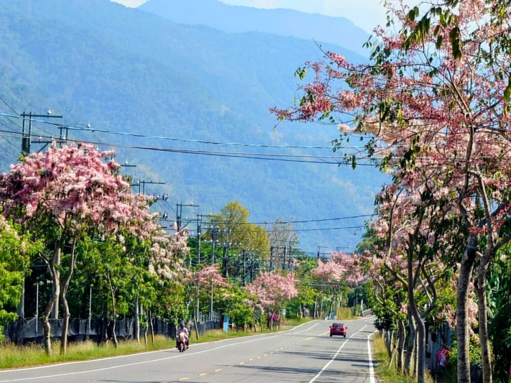 地方中心/高雄報導 (圖/高雄市府工務局公園處) 高雄市六龜區台27甲線兩側的花旗木近日進入盛開期,綿延數公里的粉色花海與…