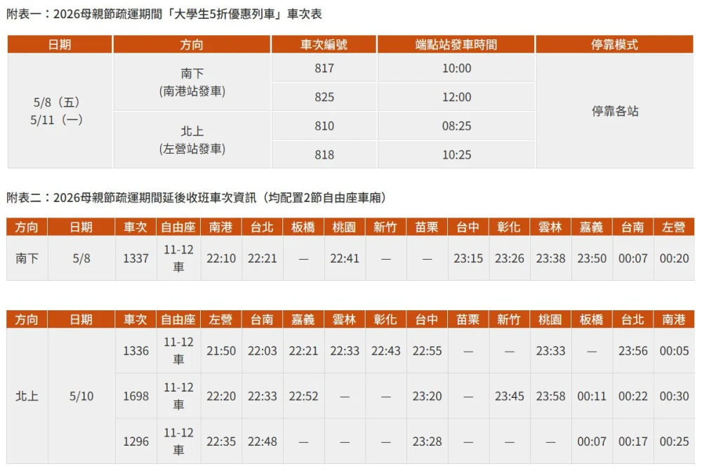 高鐵母親節疏運加開30班次 4/10凌晨開放購票