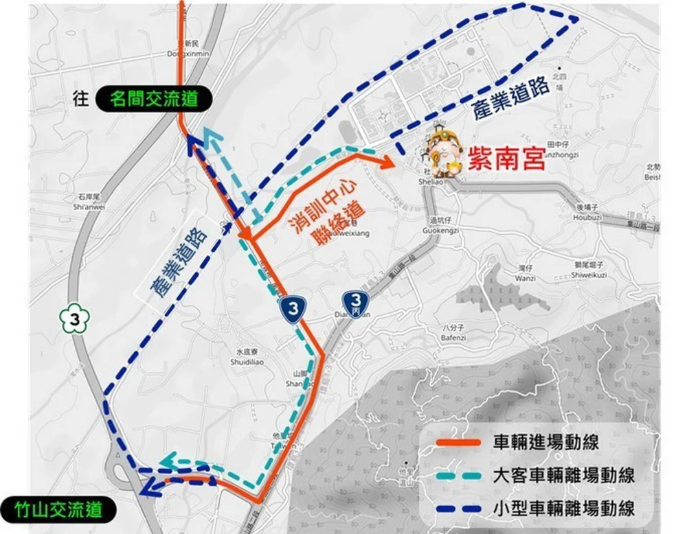 記者扶小萍/南投報導 農曆春節將至,南投縣聞名的竹山鎮紫南宮預計將迎來大批的參拜人潮。交通部公路局為避免車流回堵至台3線…