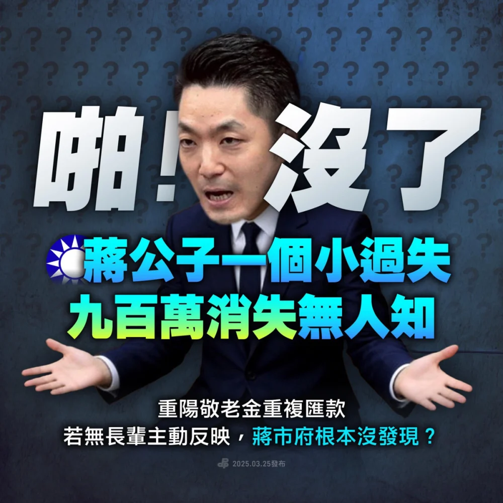 政治中心/台北報導 蔣市府搞烏龍?媒體報導,北市今年9月發放的重陽敬老金,疑似作業系統異常,社會局今年1月14日提前將「5,00…