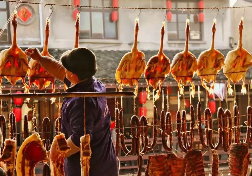 這里有最地道江南的年味,臨水的老街掛滿了臘味、醬貨,空氣里飄來濃濃的醬香味。